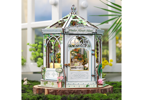 Wyjątkowy drewniany model do składania Windsor Flower House z serii Miniature House. Wyprodukowany został z naturalnych materiałów przez producenta CUTEBEE.