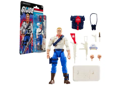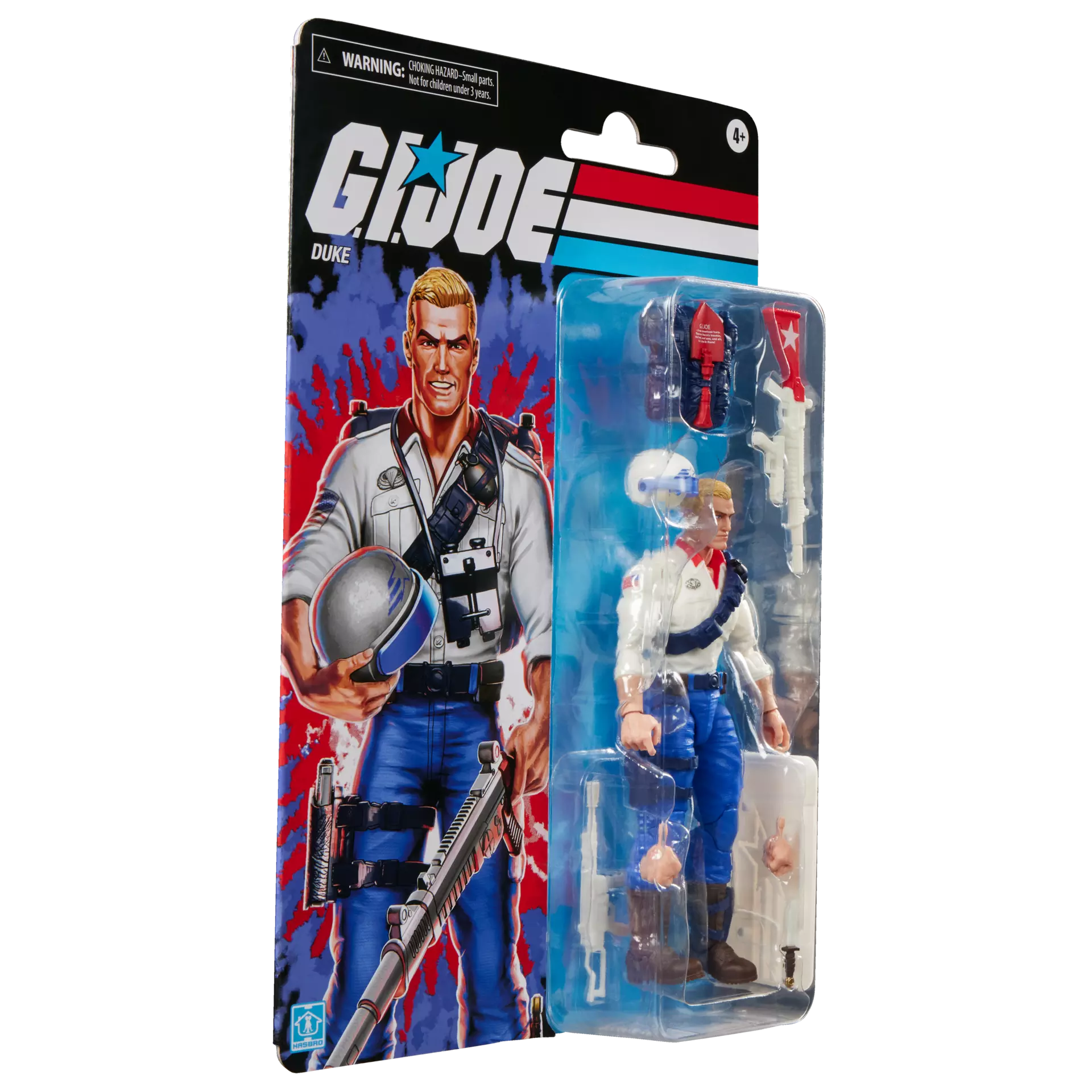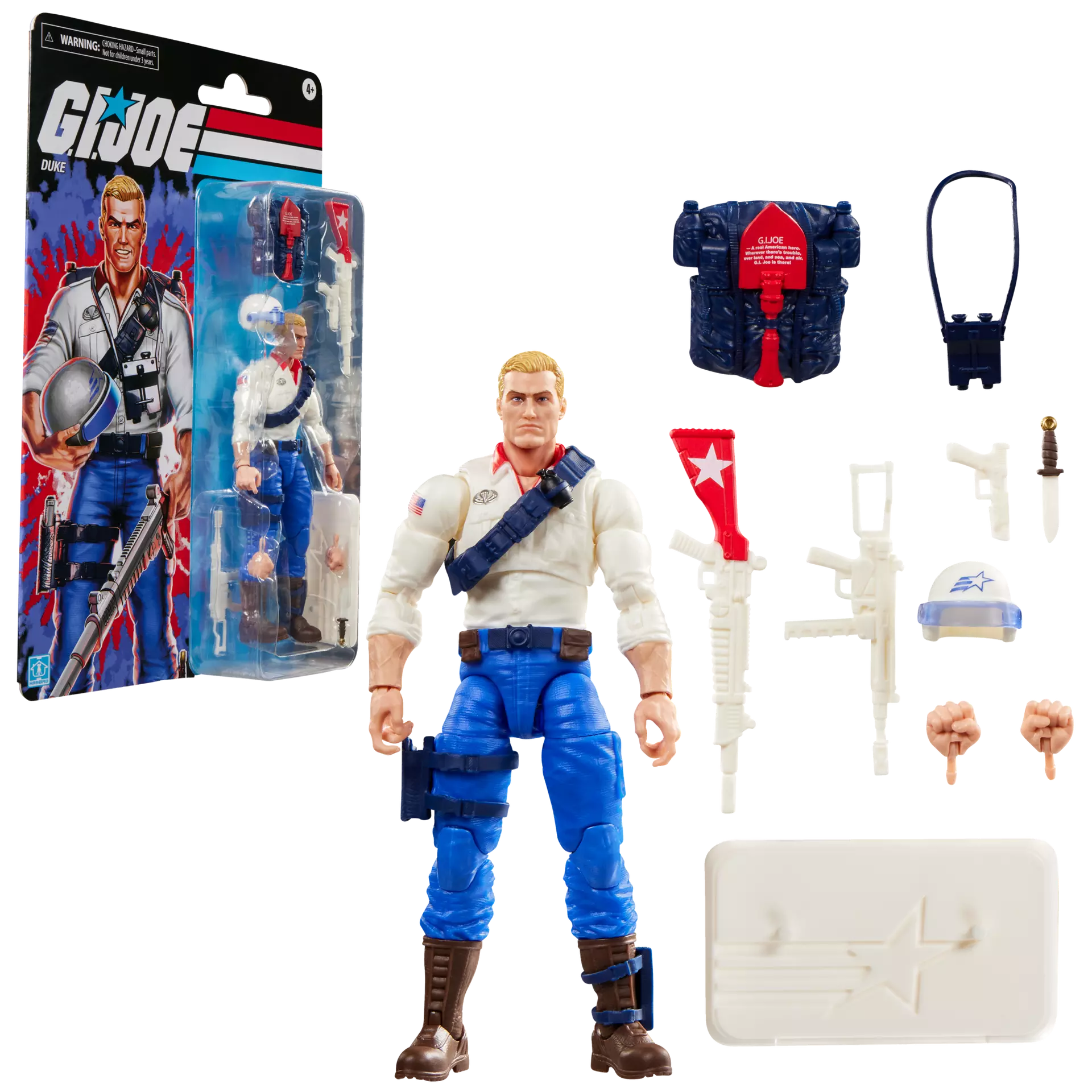Wspaniała figurka USA Duke od firmy Hasbro pochodząca z linii figurek G.I. Joe Classified Series Retro Cardboard. Mierzy około 15 cm wysokości, jest ona w pełni ruchoma i posiada w zestawie dodatkowe akcesoria dla postaci.