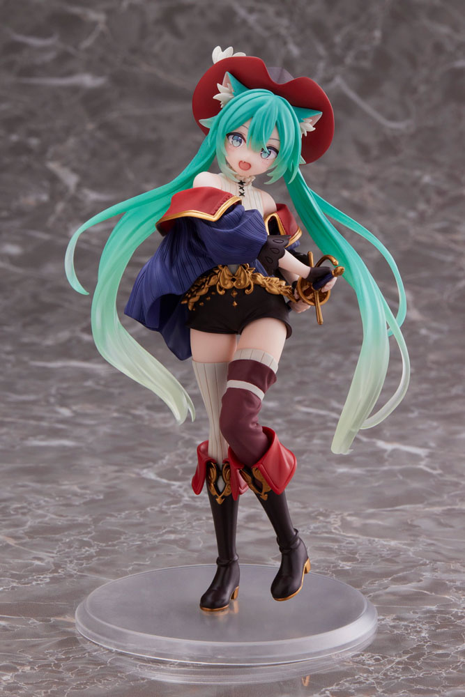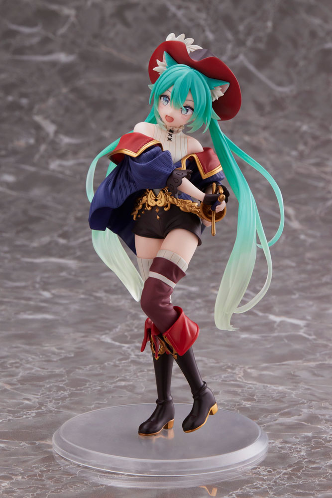Wspaniała figurka Hatsune Miku Puss in Boots od producenta Taito Prize. Wzorowana jest bezpośrednio na postaci Hatsune Miku stworzonej jako wirtualna piosenkarka, opartej na komputerowym syntezatorze śpiewu VOCALOID.