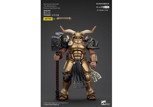 Figurka Warhammer Age of Sigmar 1/18 - Stormcast Eternals The Blacktalons Rostus Oxenhammer o wysokości około 14 cm (skala 1:18). Wzorowana jest na wizerunku postaci z gry wojennej Age of Sigmar z uniwersum Warhammera Fantasy. Została przygotowana i wydana przez cenionego producenta figurek kolekcjonerskich, firmę Joy Toy.