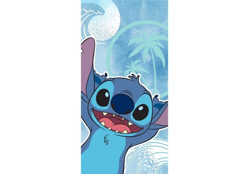 W pełni licencjonowany ręcznik plażowy Stitch. Mierzy około 70 x 140 cm i został wykonany z bawełny. Posiada na sobie naniesioną grafikę z wizerunkiem głównego bohatera filmu animowanego Lilo i Stitch wytwórni Disney.