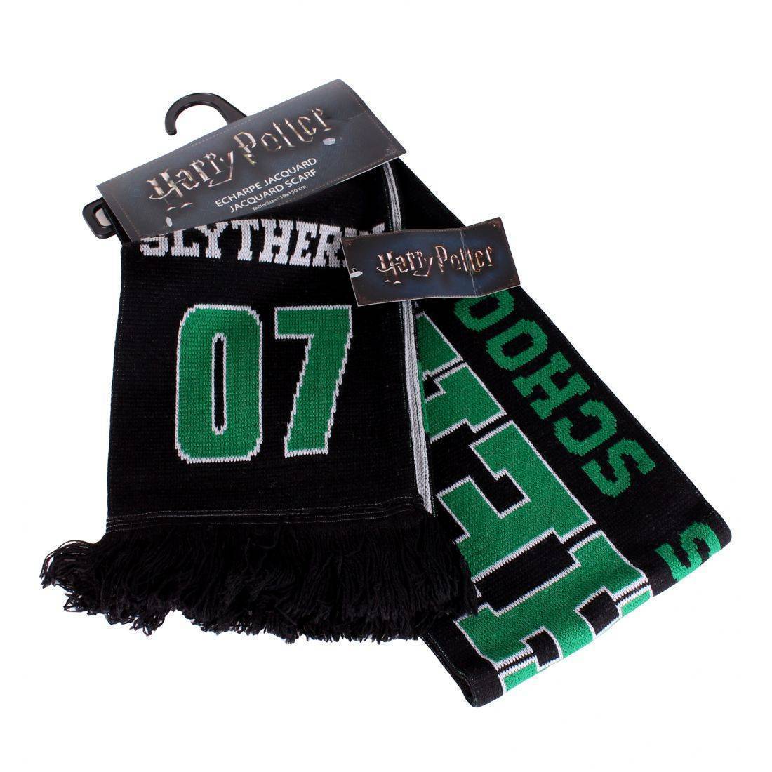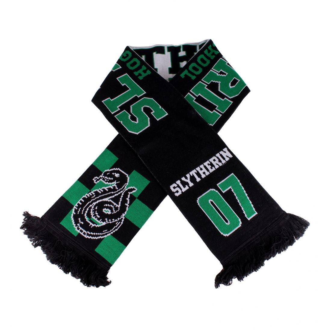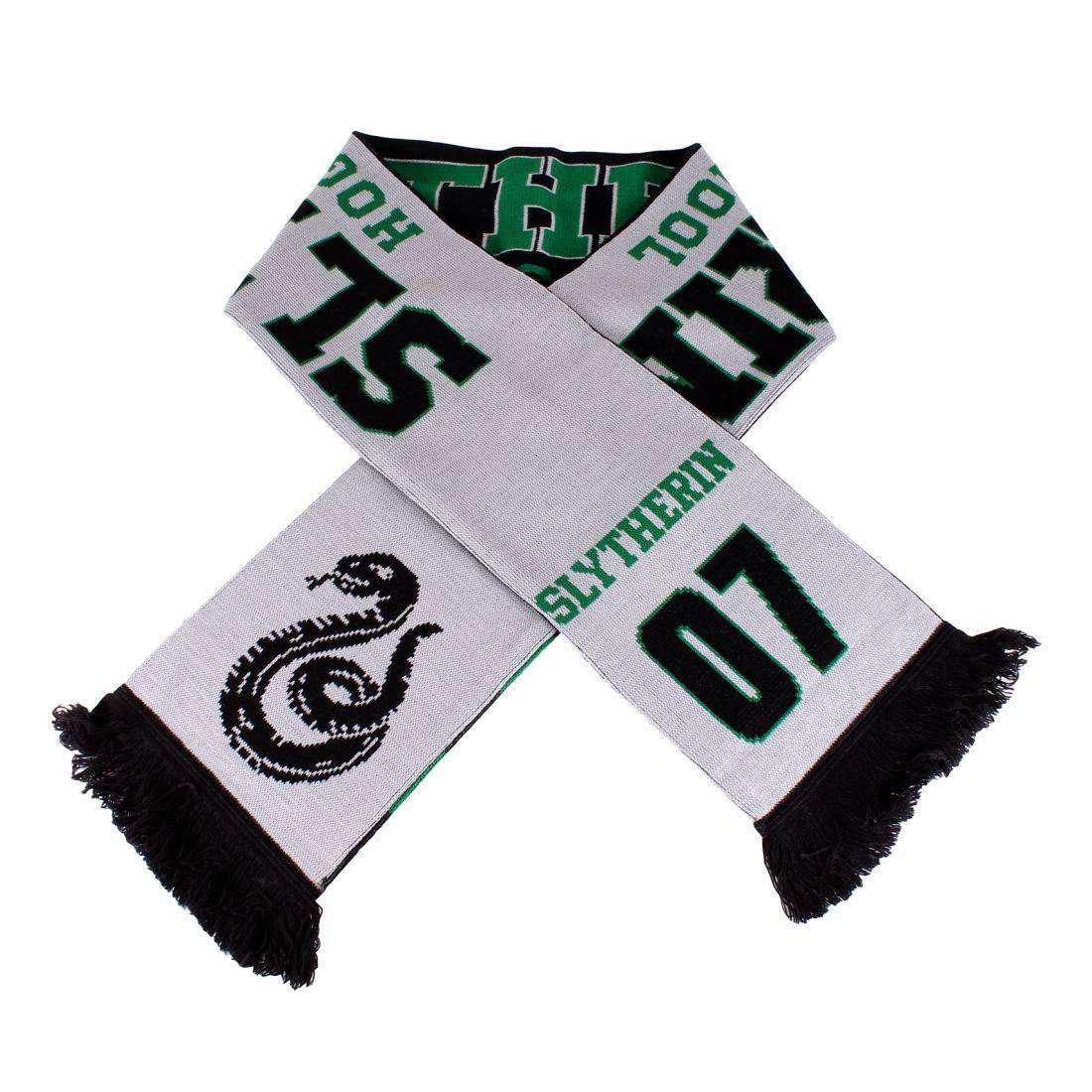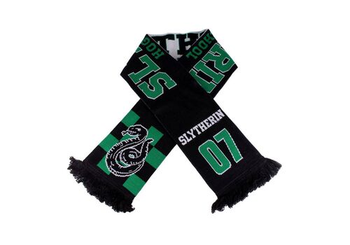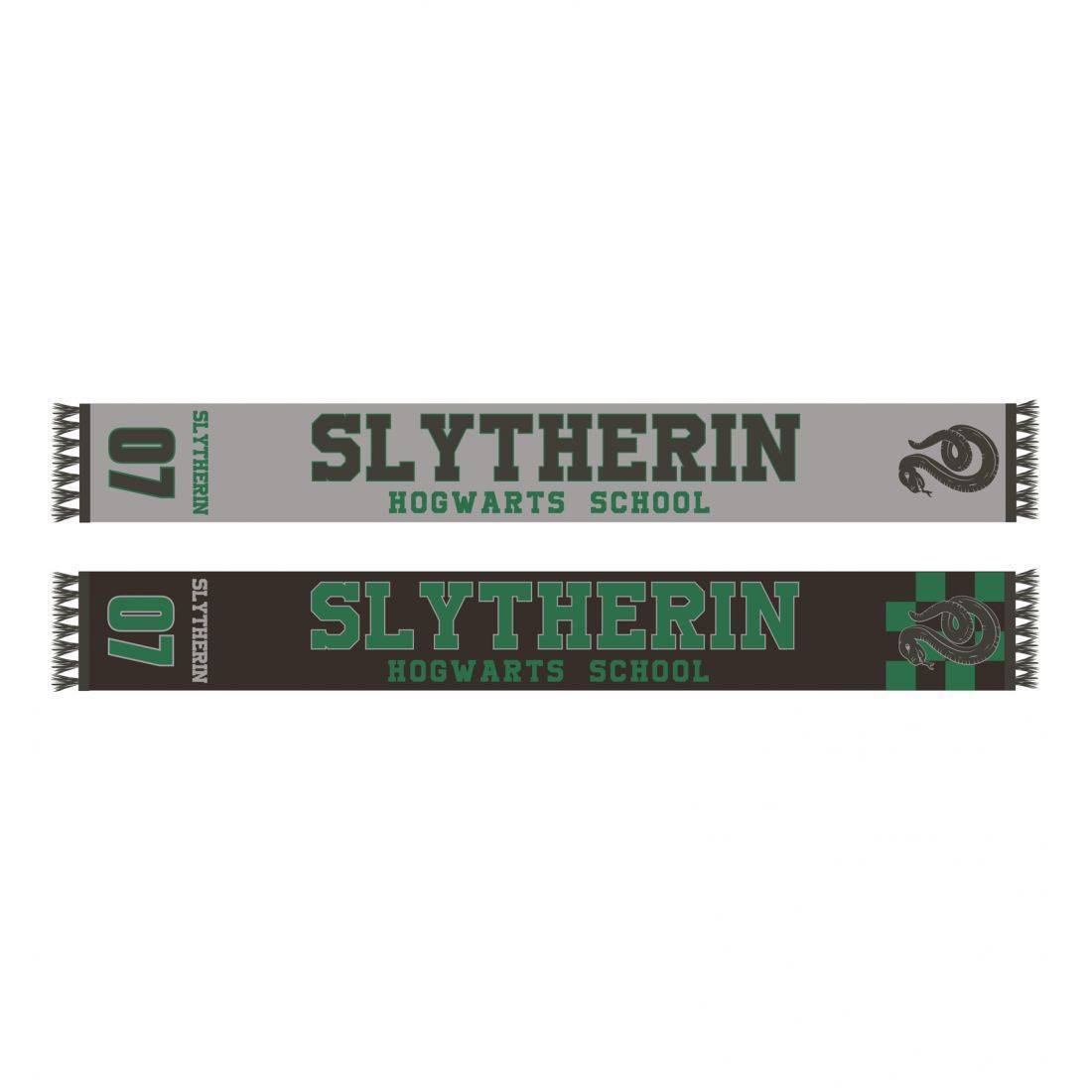 Szalik Slytherin posiada na sobie wyhaftowane wzornictwo z logiem tegoż domu w Szkole Magii i Czarodziejstwa w Hogwarcie. Utrzymany został w barwach czarno, niebiesko, zielonych, na wzór barw Slytherin.